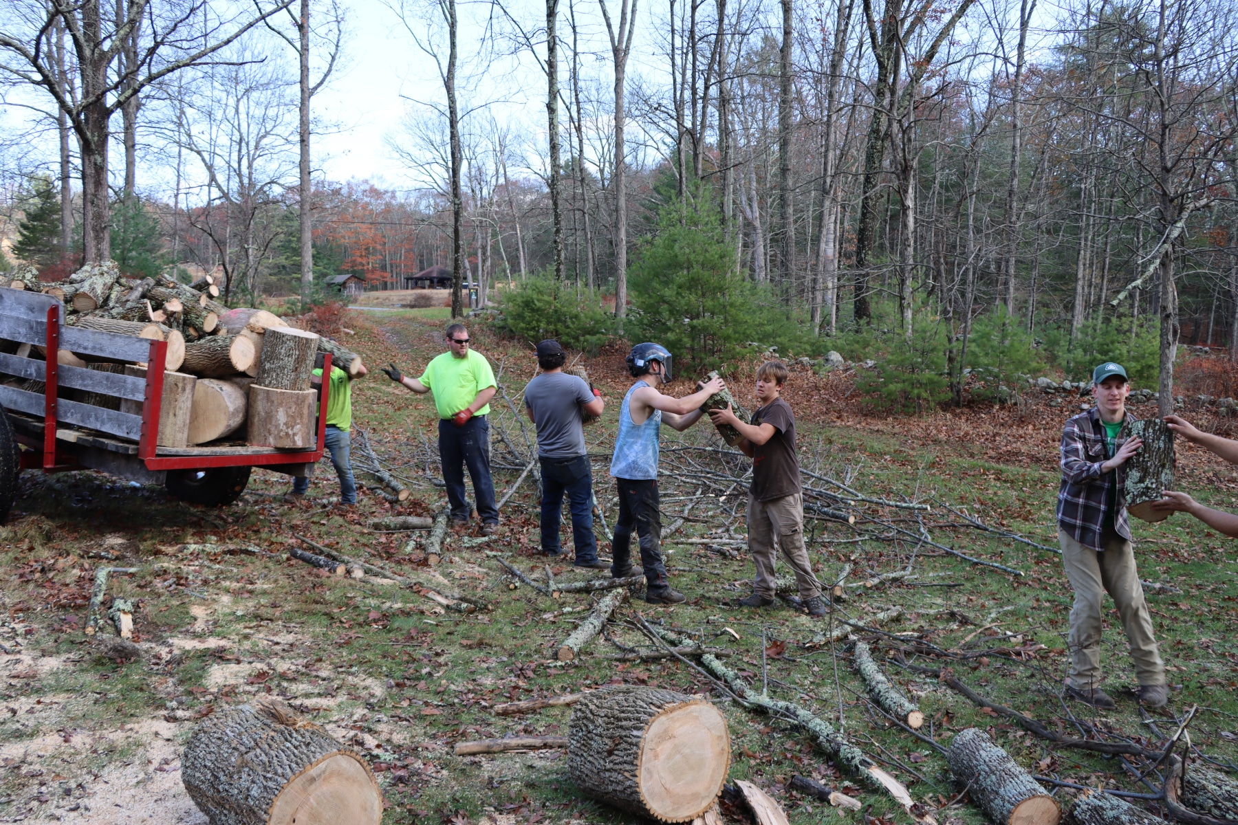 Special thanks this year to Mercersburg Mennonite Youth and Young Adults who helped us harvest, split, and stack over 24 cords of firewood! Also, returning for the second year was a local team specializing in removing hazard trees in difficult ares — this year led by Connor McNeil. Connor is a Camp staff alumni who first worked trees as part of the logging operations for the “A Time To Build” cabin construction project. Now, Connor owns his own tree trimming business and he hopes soon to grow into a full logging and land development operation. Connor’s crew is an opportunity open to young adults who live around Camp. Over Christmas weekend, we’re expecting Conestoga Mennonite Church to complete our woodcutting year. They have made their annual wood cutting a wintry tradition, often spending a day near New Years in our frosty woods!